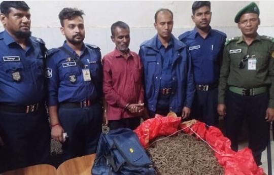 নাটোর রেলস্টেশনে দায়িত্বরত সান্তাহার জিআরপি পুলিশের এ এস আই সিরাজুল ইসলাম বলেন,গোপন সংবাদের ভিত্তিতে বুধবার বিকেলে লালমনিরহাট থেকে ঢাকাগামী আন্তঃনগর লালমনি এক্সপ্রেস থেকে রেলষ্টেশনে নামা এক যাত্রীকে থামতে বললে সে পালানোর চেষ্টা করেন। এক পর্যায়ে ধাওয়া করে মাদক পাচারকারী আসলাম শেখকে গ্রেপ্তার করা হয়।পরে তাঁর হাতে থাকা একটি ট্রাভেল ব্যাগ তল্লাশি করলে ৮ কেজি ভারতীয় গাঁজা পাওয়া যায়।আটক আসলাম আলীর বিরুদ্ধে মাদক আইনে মামলা দিয়ে নাটোর সদর থানায় সোপর্দ করা হয়েছে ।