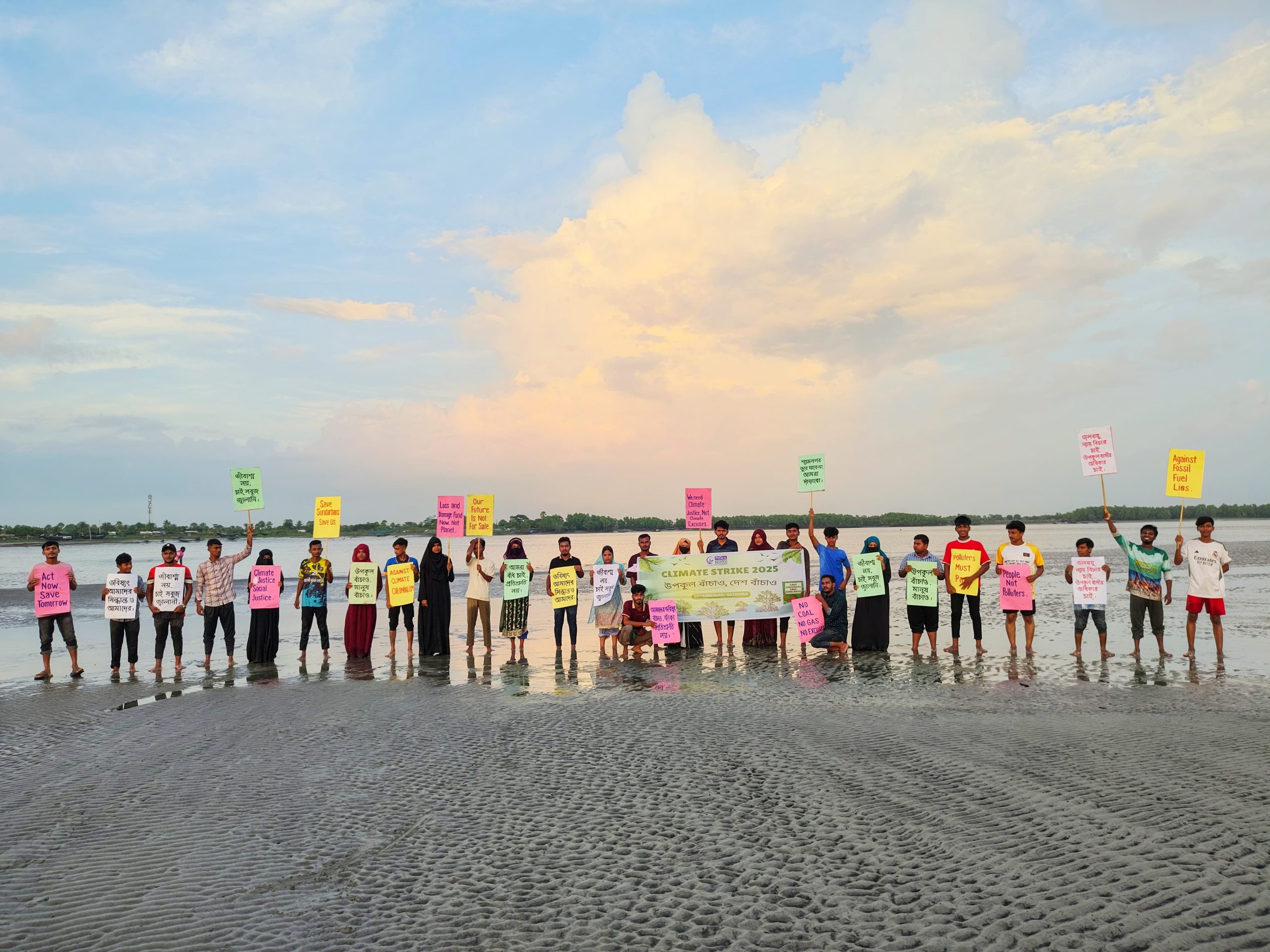 কপ-৩০ সামনে রেখে সাতক্ষীরার শ্যামনগরে স্বেচ্ছাসেবী যুব সংগঠন সিডিও ইয়ুথ টিমের আয়োজনে যুব সমাজের কণ্ঠস্বর “উপকূল বাঁচাও, দেশ বাঁচাও” স্লোগ্রানে জলবায়ু ধর্মঘাট অনুষ্ঠিত হয়েছে।ধর্মঘাট কালীন সময়ে যুবরা প্লাকার্ড প্রদর্শনীতে বলেন, জলবায়ু পরিবর্তনের ক্ষতি, অন্যায় ও অনিশ্চয়তার বিরুদ্ধে আমরা দাঁড়িয়েছি। আমাদের ভবিষ্যৎ বিক্রি নয়, এখনই জলবায়ু ন্যায়বিচার চাই।