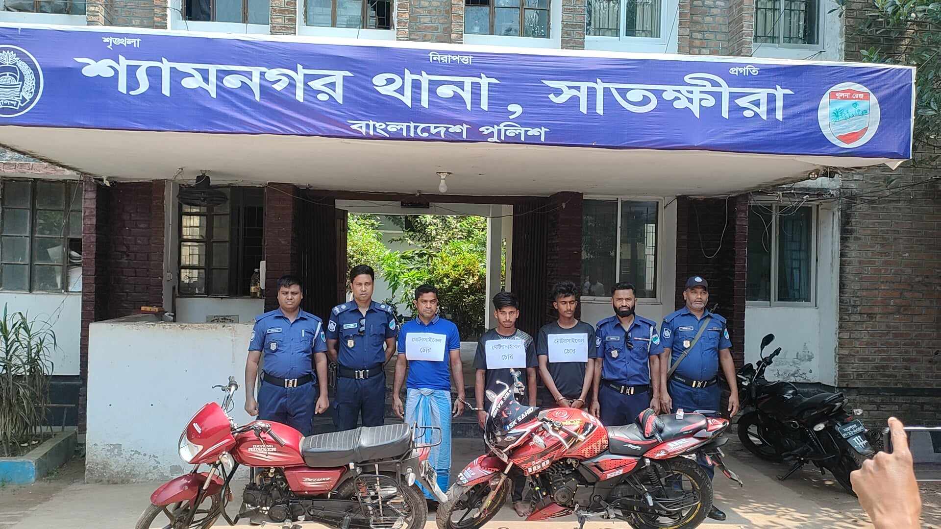 শ্যামনগর পৌরসভার বাদঘাটা এলাকার আব্দুল হামিদের ছেলে মোটরসাইকেল মালিক সাইফুল ইসলাম জানান, ২১ মার্চ সকাল ১১টার দিকে শ্যামনগর উপজেলা পশু হাসপাতালের সন্নিকটে মডার্ন ক্লিনিকের গলি থেকে তার ব্যবহৃত ডায়াং ৮০ সিসি মোটরসাইকেলটি চুরি হয়। এ ঘটনায় শ্যামনগর থানায় অজ্ঞাতনামা আসামি করে লিখিত অভিযোগ দায়ের করেন । সিসি ক্যামেরার ফুঁটেজসহ চুরির ঘটনাটি গণমাধ্যমে প্রকাশিত হলে ওই ফুঁটেজ দেখে শনিবার সকালে কালিগঞ্জ থেকে একাধিক ব্যক্তি চোর শনাক্ত করে শ্যামনগর থানাকে অভিহিত করেন। এ সংবাদ পেয়ে শ্যামনগর থানার এস আই অমিত ও এ এস আই দিপক মন্ডল সঙ্গীয় ফোর্স নিয়ে কালিগঞ্জ থানাধীন মহৎপুর গ্রামের নুরুজ্জামানের ছেলে শাহেদ গাজী(১৬) একই গ্রামের ছেলে এন্ড কলেজের শেখ রফিকুল ইসলামের ছেলে শরিফুল ইসলাম (৩৭) ও দেয়া গ্রামের শরিফুল ইসলামের ছেলে পাউখালী টেকনিক্যাল স্কুল এন্ড কলেজের ছাত্র শাহেদ হাসান(১৬) কে দেয়া গ্রাম থেকে আটক করে ও একই গ্রামের দুঃখের ছেলে আলী হোসেন(১৫) পলাতক রয়েছে। পরবর্তীতে তাদের তথ্যের ভিত্তিতে একই জায়গা থেকে চোরাই কাজে ব্যবহৃত একটি টিভিএস কোম্পানির অ্যাপাচি মোটরসাইকেল ও চুরি হওয়া মোটরসাইকেলটি উদ্ধার করেন। এ ঘটনায় আটককৃত ৪ জন সহ কয়েকজন অজ্ঞতানামা আসামি করে শ্যামনগর থানায় নিয়মিত মামলা হয়েছে। যার নং ২৮ তারিখ ২৪ মার্চ। শ্যামনগর থানার অফিসার ইনচার্জ আবুল কালাম আজাদ এর সাথে মুঠোফোনে কথা হলে তিনি ঘটনার সত্যতা স্বীকার করেন বলেন আসামিদের কোর্ট হাজতে প্রেরণ করা হয়েছে।